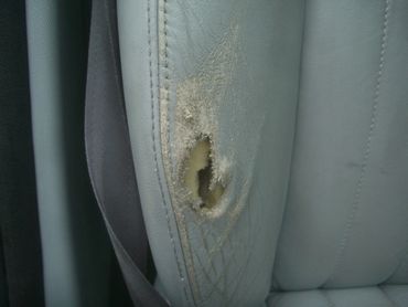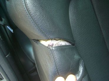 This example shows how a hole has developed over time in a high wear area on the drivers seat due to the driver entering and exiting the car. The side bolster is an area that I often repair at customer's homes.