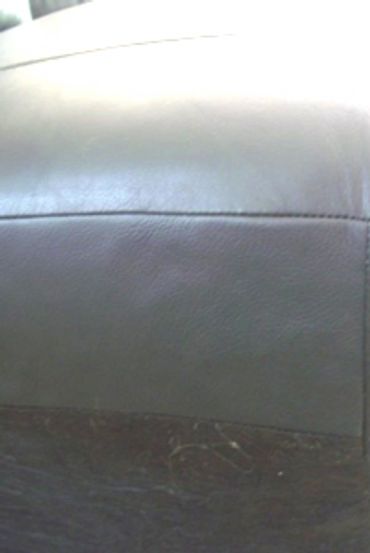 The leather arm cover on this sofa was accidentally torn. The damage was rectified on the intial visit by fitting a sub patch, filling and recolouring the affected panel. The result was virtually invisible.