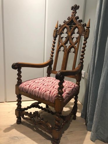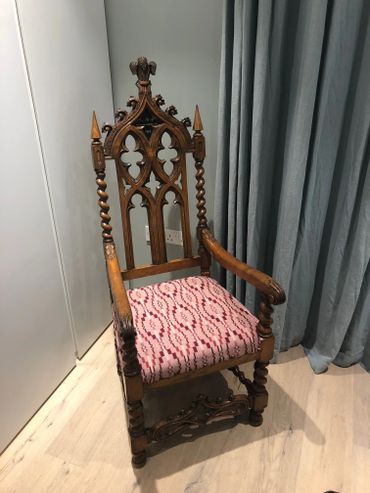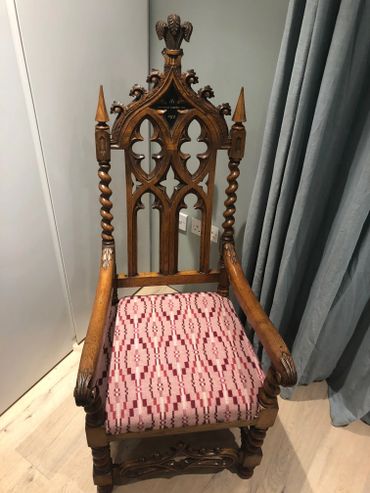 'Thank you for the wonderful work you have carried out with my Welsh bardic chair, it was traditionally awarded at eisteddfodau to the writer of the most worthy poem on a set theme. This chair was (quite controversially) won by a poet called Fferyllfardd at the 1873 Anglesey Island eisteddfod at Porthaethwy (Menai Bridge).